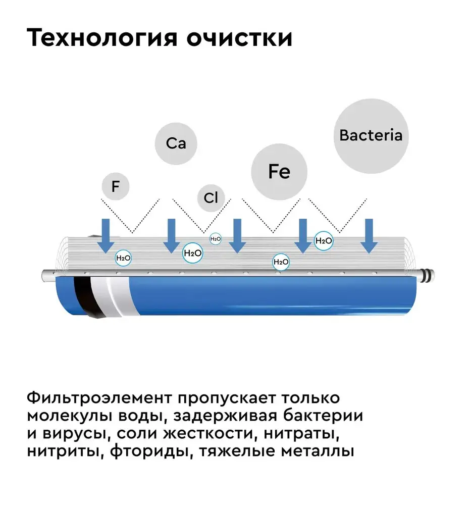 Обратноосмотическая мембрана БАРЬЕР ПРОФИ Осмо 600 используется в качестве третьей ступени в фильтре БАРЬЕР ПРОФИ Осмо 600. Ресурс зависит от качества исходной воды, но не более 18 000 литров. Производительность 2270 литров в сутки (600 галлон). Рекомендуемая частота замены – один раз в 12–18 месяцев. Обратноосмотическая мембрана очищает воду от примесей на молекулярном уровне. Пропускает только молекулы воды, задерживая бактерии и вирусы, соли жесткости, нитраты, нитриты, фториды, тяжелые металлы. Мембрана БАРЬЕР ПРОФИ Осмо 600 предназначена для замены ТОЛЬКО в фильтре ПРОФИ Осмо 600, с остальными фильтрами семейства БАРЬЕР ПРОФИ Осмо картридж не совместим. Комплект картриджей 1, 2 и 4 ступеней приобретается отдельно.